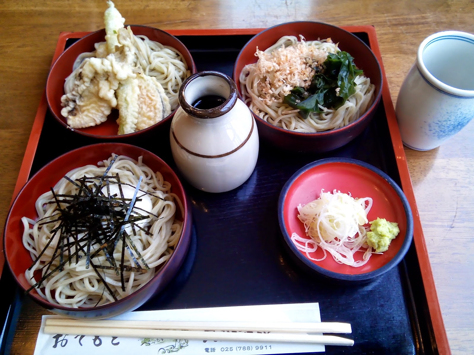 | Variation of cold soba in Kaikake Onsen, Yuzawa, Niigata. |